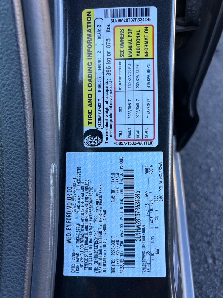 Vehicle Inquiry for 2007 Lincoln MKZ 4dr Sdn AWD