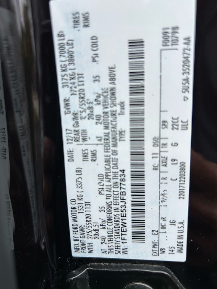 Vehicle Inquiry for 2018 Ford F-150 4WD SuperCrew 145" XL